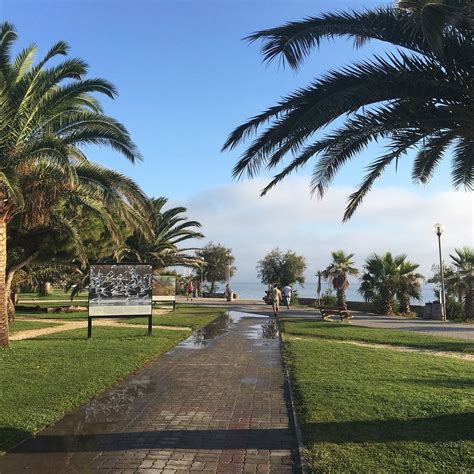 Magnifique la longue promenade du bord de mer. Allée piétonnière et séparée par un terre plein central de palmiers, une piste cyclable.